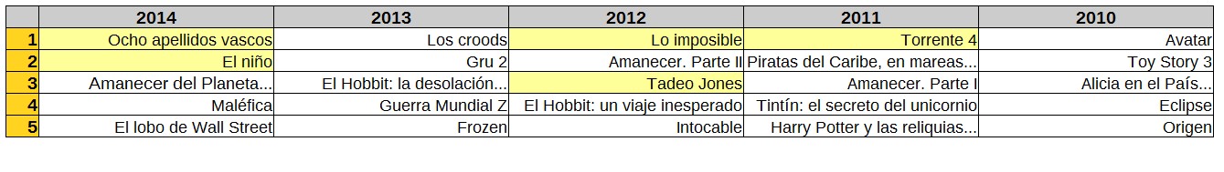 También habría que analizar si lo que estaban ofreciendo los artistas era lo que el público les pedía. En este sentido, no hay más que ver la lista de las cinco películas más taquilleras en España en los últimos cinco años