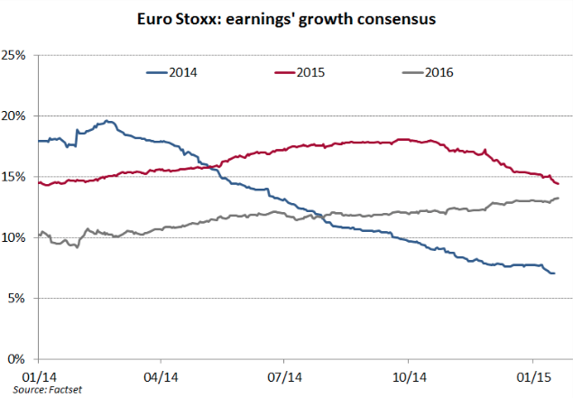 Al margen de los fuegos artificiales del BCE, también es importante subrayar que la perspectiva de ganancias de las cotizadas europeas viene de soportar un 2014 a la baja, lo que abre la puerta a un 2015 y un 2016 más positivos. Esta mejora en los fundamentales de las empresas del Viejo Continente reforzaría el optimismo de Lazard ante el futuro desempeño de los índices europeos.