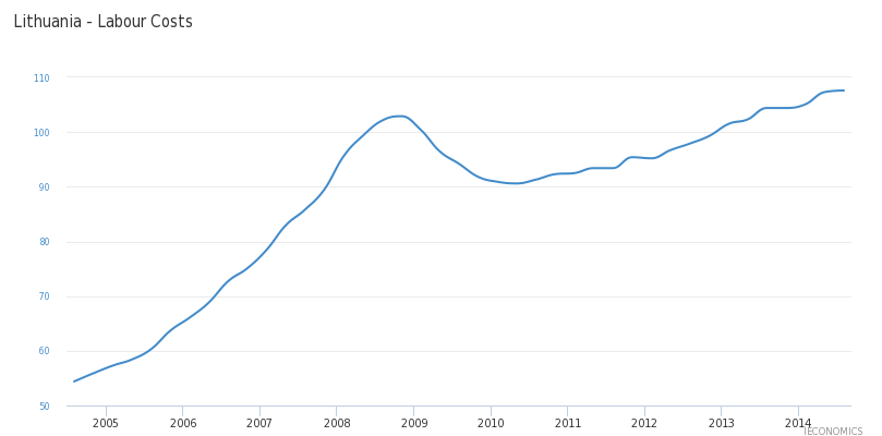 La llegada de la Gran Recesión al país báltico redujo sustancialmente el ritmo de crecimiento de la economía. En 2005, 2006 y 2007, el PIB lituano se disparó un 25,4%; no obstante, en 2008 la actividad se enfrió hasta el 2,9%, paso a un desplome del PIB a tasas negativas del -14,8%.