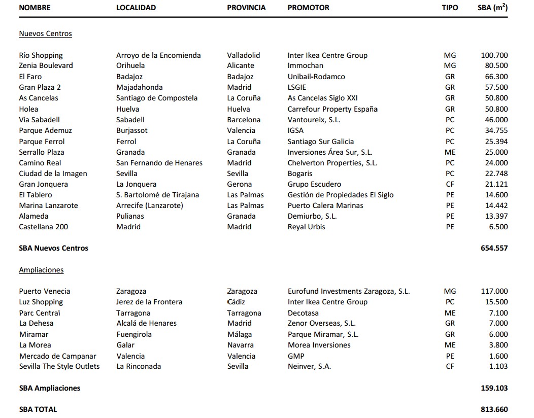 Así, dentro del sector minorista español, la cuota de mercado de los centros comerciales ha alcanzado el 17,13%. A día de hoy, en España operan 545 centros comerciales que suman 15.438.733 m2 de superficie bruta alquilable y reúnen a más de 33.000 comerciantes.