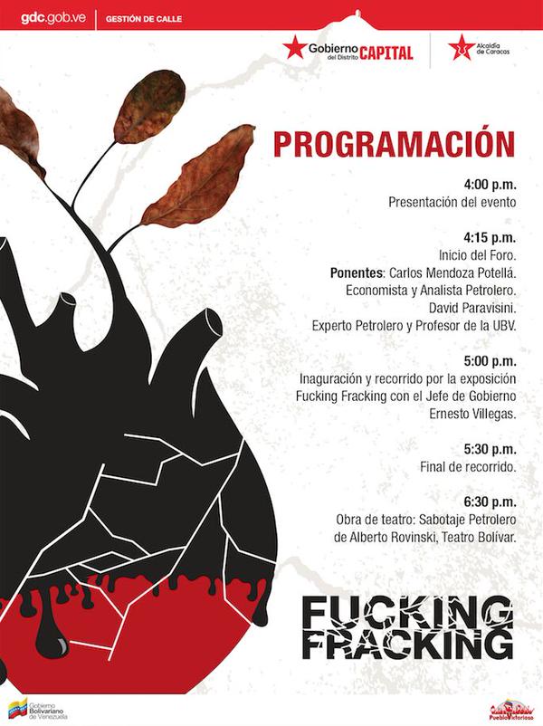 La agencia estatal de noticias AVN ha difundido un comunicado de presentación del ciclo en el que afirma que "el "fracking" forma parte de una estrategia para inundar el mercado con su producción de crudo de esquisto. Este incremento desmesurado del "fracking" tiene un propósito político: ocasionar la caída de los precios y, a la vez, afectar las economías de países de hidrocarburos como Irán, Rusia y Venezuela".