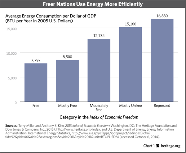 De hecho, el grado de eficiencia energética es más elevado en aquellas economías que mantienen un marco favorable a los principios del libre mercado: