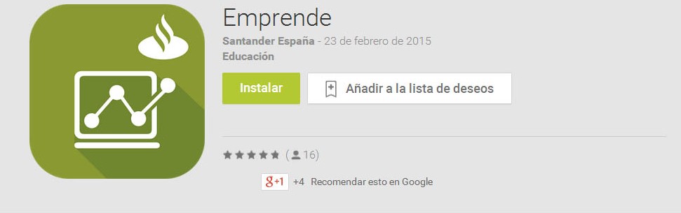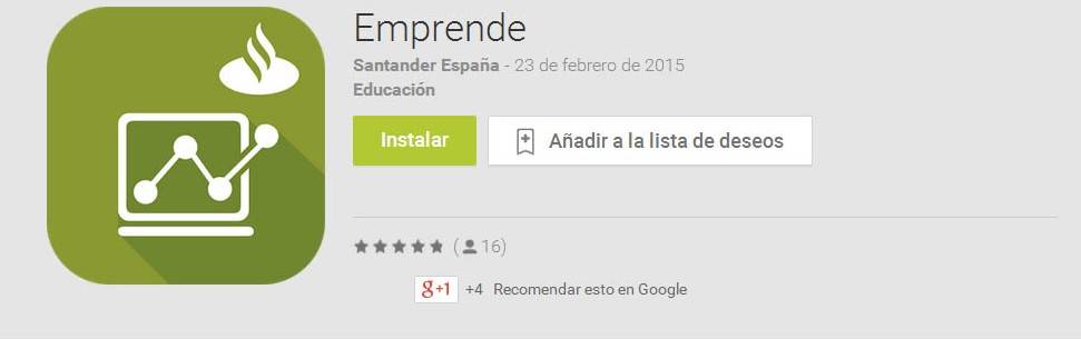 Emprende: https://play.google.com/store/apps/details?id=com.santander.emprende