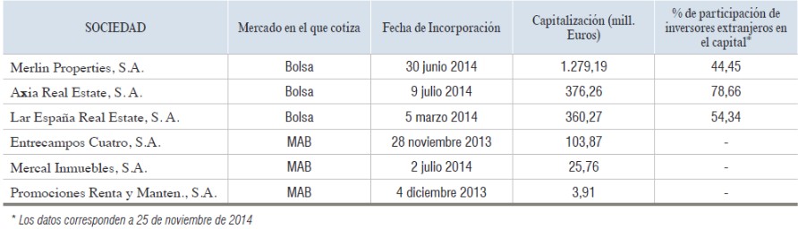 En el siguiente gráfico podemos ver las mayores SOCIMI's de nuestro país y el significativo porcentaje que pertenece a capital extranjero. Buena señal que el ladrillo español vuelva a recuperarse, pero mejor noticia aún que la inversión extranjera en el mismo sea mayoritaria.