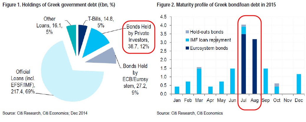 Lo que más teme el BCE es el primer escenario. El riesgo en este caso radica en que Atenas tense tanto la cuerda de las negociaciones que, llegado un punto y en ausencia de los fondos de rescate, sea incapaz de afrontar sus compromisos financieros, entrando así en default; las agencias de rating se verían obligadas a declarar a Grecia en quiebra y, como consecuencia, el BCE tendría que cancelar de inmediato su línea extraordinaria de liquidez (ELA) a los bancos helenos; el sistema financiero griego colapsaría, las entidades tendrían que cerrar y Atenas decretaría un corralito y un estricto control de capitales; todo ello, unido a la falta de liquidez para cubrir sueldos, pensiones y servicios públicos acabaría, posiblemente, en la salida del euro de Grecia, con las consiguientes pérdidas para sus acreedores.
