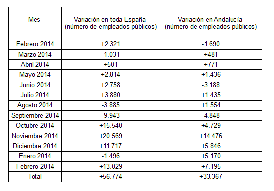 La siguiente tabla muestra la variación observada mes a mes, ofreciendo el saldo a nivel nacional y los datos observados en Andalucía: