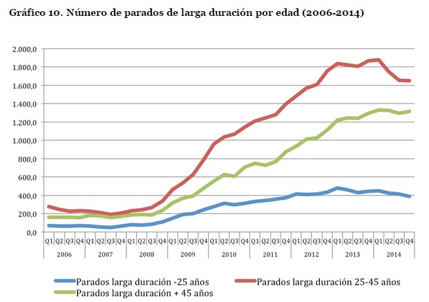 Por otro lado, más allá del drama que representa sufrir una tasa de paro superior al 20%, la gran tragedia del mercado laboral español consiste en la baja empleabilidad que registra una parte de la población activa, lo cual se refleja en un elevado desempleo de larga duración. Es decir, el drama no solo es el paro, sino la escasa capacidad para reincorporarse al mercado laboral una vez que se pierde el empleo.