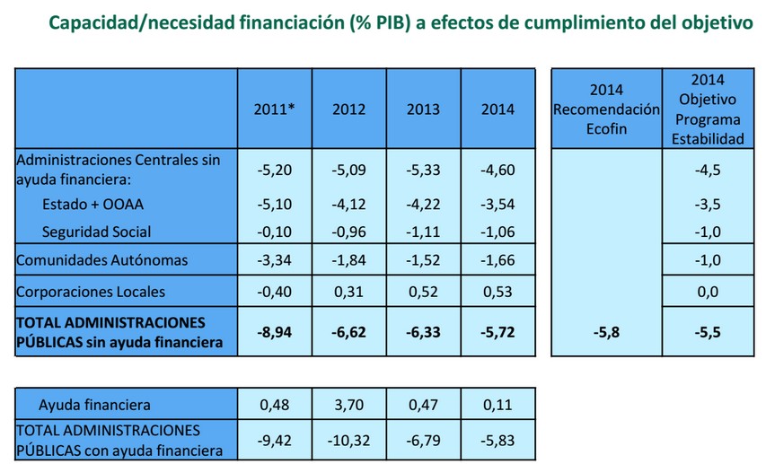 Las administraciones públicas españolas cerraron 2014 con un déficit equivalente al 5,7% del PIB. Esto es una décima menos que el compromiso adquirido con Bruselas del 5,8%, pero dos décimas más de lo previsto en el Cuadro Macroeconómico aprobado por el propio Gobierno en junio del pasado año. Es decir, se ha incumplido en estas dos décimas el objetivo que se marcó a mitad del ejercicio.