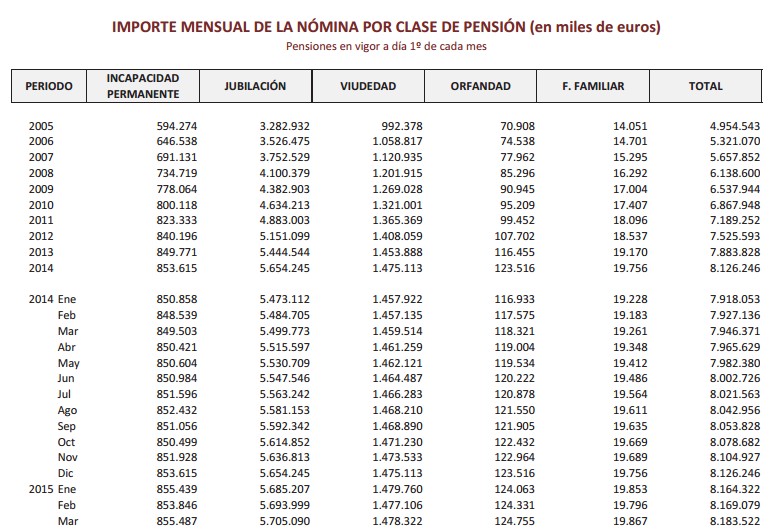 La Seguridad Social pagará 8.183 millones de euros en pensiones este mes de marzo. Son 882,76 euros de media por prestación para los 9.270.398 beneficiarios. Todas estas cifras son récords absolutos. Y todas son buenas noticias. Esto quiere decir que los ancianos españoles tienen más renta, han cotizado más a lo largo de su vida laboral y viven más una vez que se jubilan.