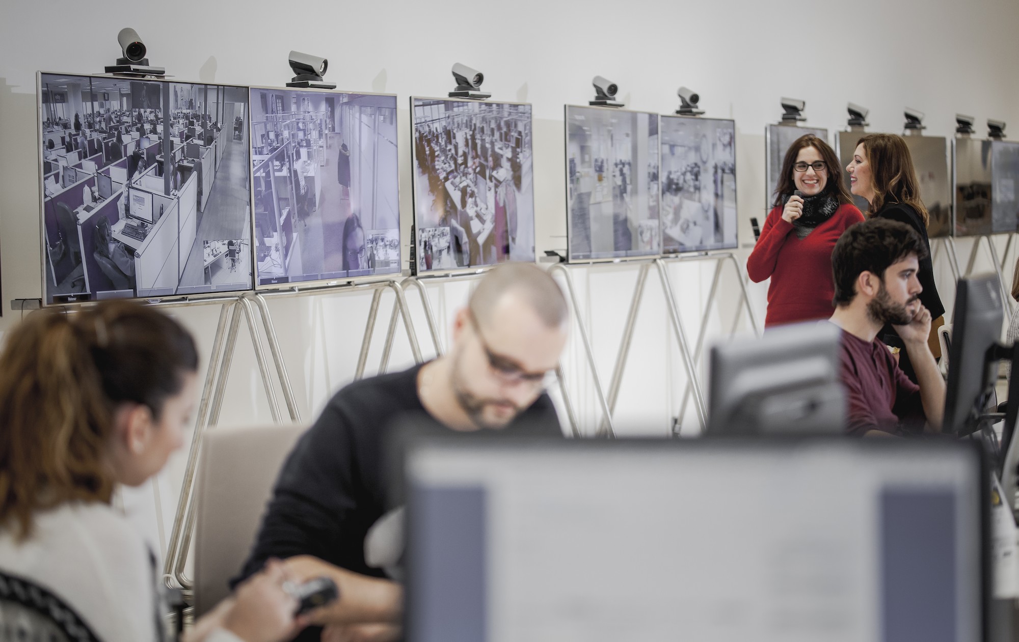 Los empleados de la sede de Inditex están en contacto permanente con los trabajadores de las fábricas y almacenes de todo el mundo a través de pantallas de vídeo conferencia