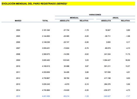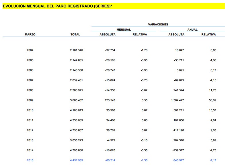 Por un lado, el número de parados registrados en el antiguo Inem bajó en 60.214 personas respecto a febrero, su mayor descenso en un mes de marzo desde 2002, hasta situarse en un total de 4.451.939 desempleados. Cabe recordar que, en los últimos seis años, el paro registrado en marzo había aumentado por término medio en más de 35.000 personas.