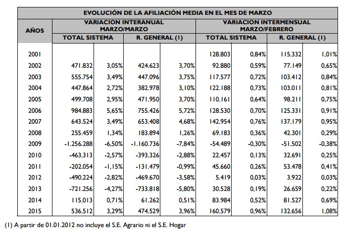 El pasado marzo marcó un nuevo récord histórico tanto en reducción de paro como en aumento de la afiliación a la Seguridad Social, según los últimos datos oficiales publicados este lunes por el Ministerio de Empleo. Sin embargo, más allá de las cifras concretas, lo más relevante es que el mercado laboral español ha recuperado el ritmo de avance previo al estallido de la crisis, confirmándose así la favorable tendencia que se viene observando en los últimos trimestres.