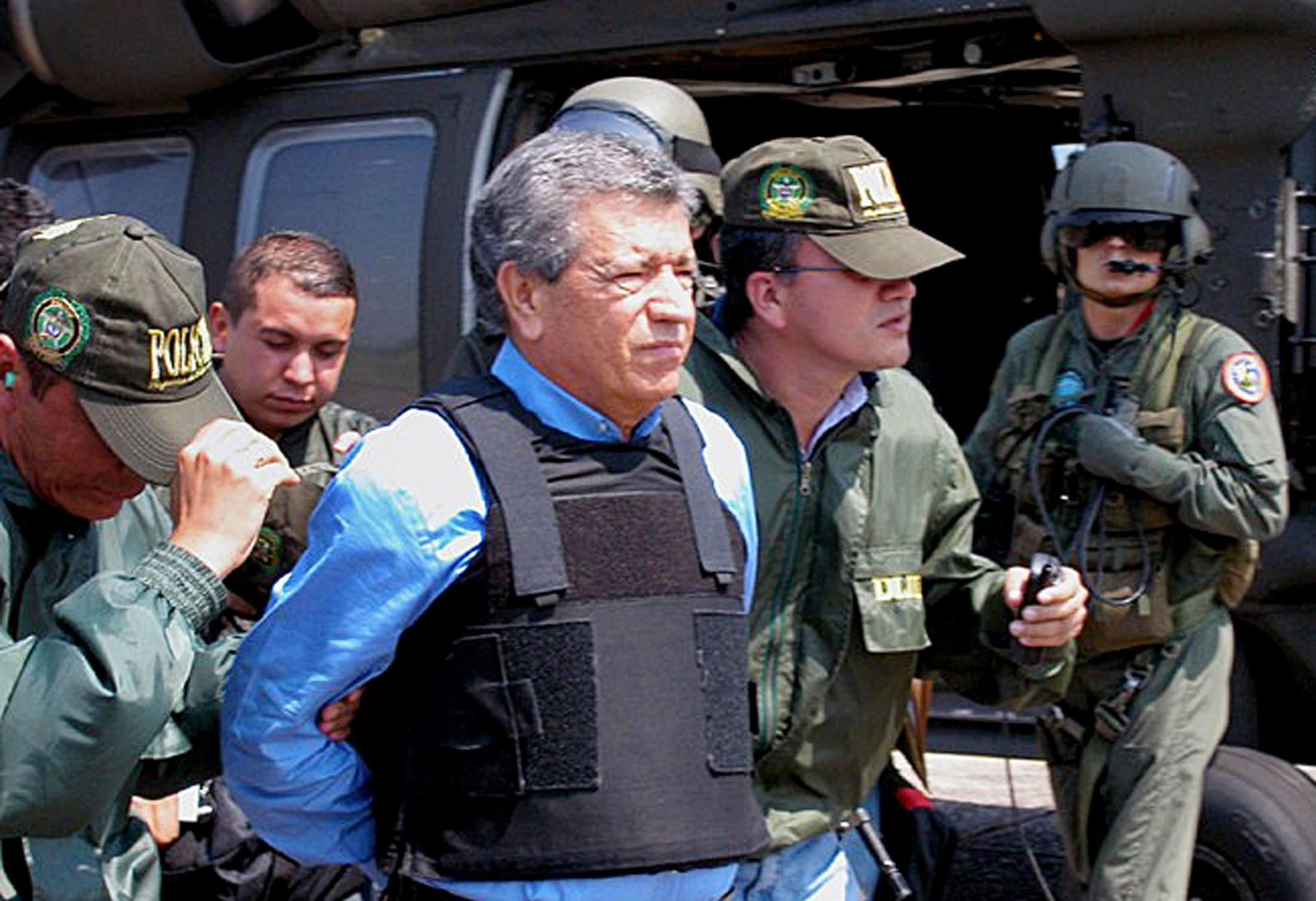 Miguel y Gilberto Rodríguez Orejuela fueron los máximos líderes del cártel de Cali, los grandes rivales de Escobar y los otros jefes del cártel de Medellín. Aunque por supuesto hacían uso de la violencia, generalmente preferían el soborno y la extorsión como métodos, y lograron así controlar un gran porcentaje de la cocaína que se trasladaba de Colombia a EEUU. En 1995 fueron detenidos, poco después del escándalo que supuso descubrir que habían financiado con seis millones la campaña electoral del entonces presidente, Ernesto Samper. En la imagen, Miguel Rodríguez Orejuela durante su extradición a EEUU, donde actualmente sigue cumpliendo condena al igual que su hermano