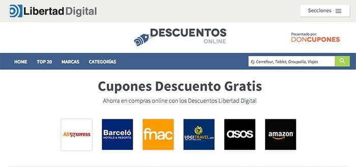 Con esto último nos referimos a una nueva moda con una tendencia al alza: los cupones descuento. Se trata de una forma de promoción en la que se especializan varias webs y que permiten al usuario canjear un código promocional concreto en una tienda online para bajar el precio. Miles de empresas se han sumado a esta forma de relacionarse con sus clientes potenciales, y en Libertad Digital nos ha parecido una buena forma de premiar a nuestros lectores. Así, hemos creado una nueva sección que pretende abrir una nueva vía interacción con nuestros usuarios gracias a los Descuentos Libertad Digital.