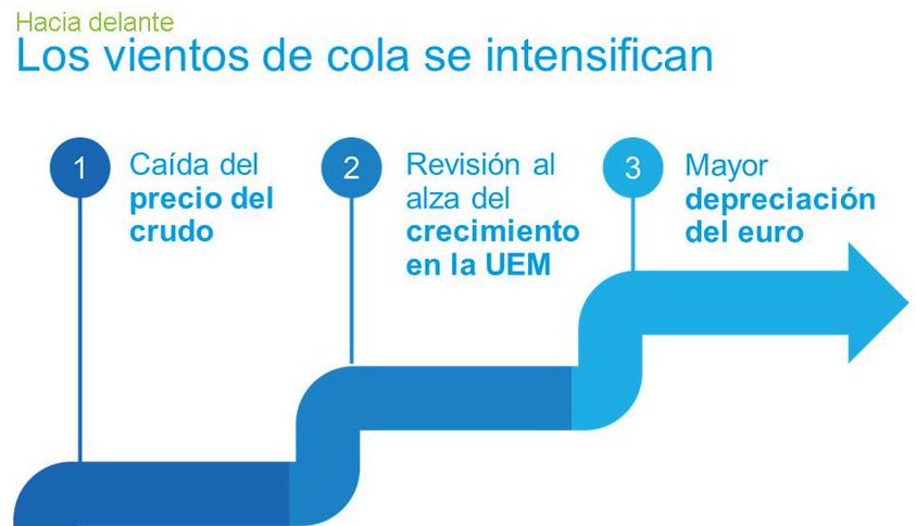 Estos "vientos de cola" han intensificado su fuerza, ya que las "ganancias de competitividad impulsadas por la disminución del precio del petróleo, la depreciación del tipo de cambio y la reducción de los tipos de interés durante los próximos dos años probablemente serán superiores a las previstas hace tres meses", destaca la entidad.