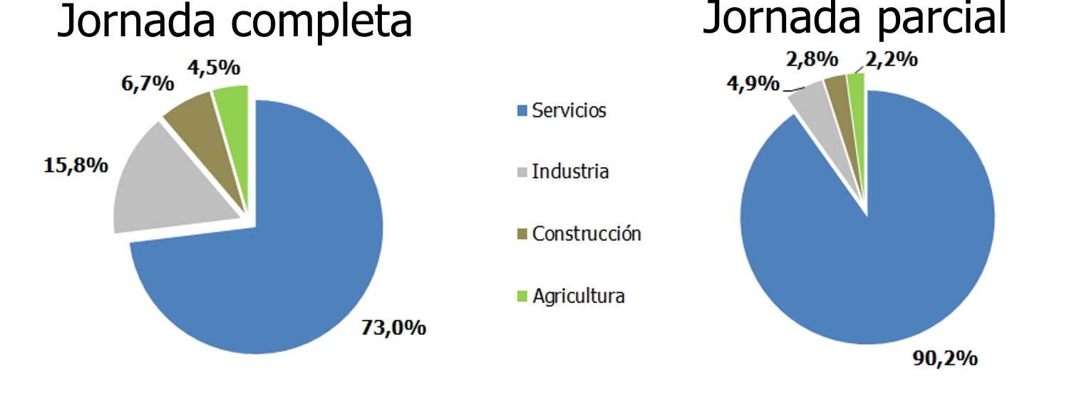 Se debe tener en cuenta, en este punto, que la jornada de trabajo a tiempo parcial continúa siendo, en gran medida, un modelo que se aplica en el sector servicios, que acumula más del 90% de los profesionales con esta jornada.
