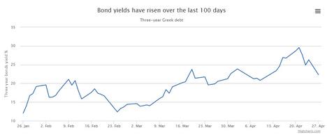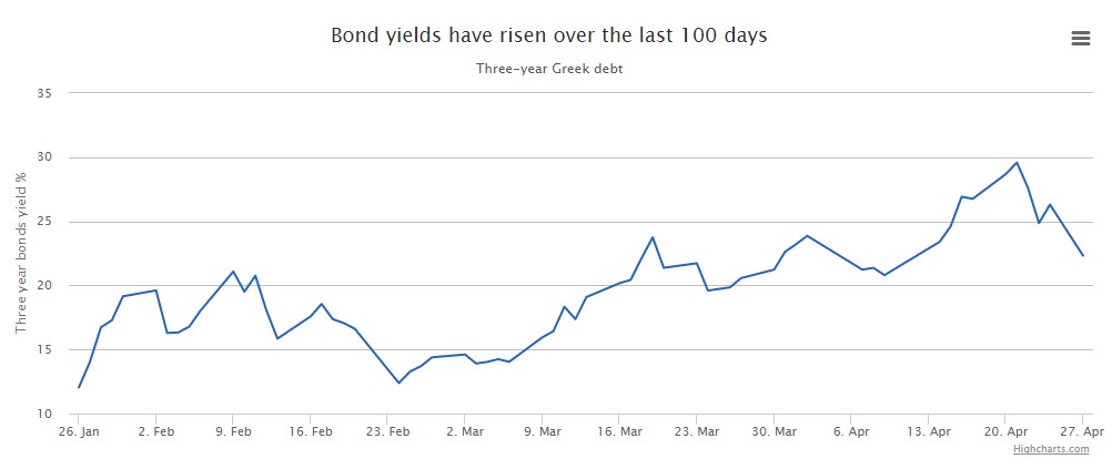 Pero el Gobierno de Syriza no sólo ha asustado, y mucho, a los ahorradores griegos, sino también a los inversores. La rentabilidad de sus bonos a tres años ha subido de forma muy sustancial desde finales de enero ante el creciente riesgo de impago soberano y salida del euro.