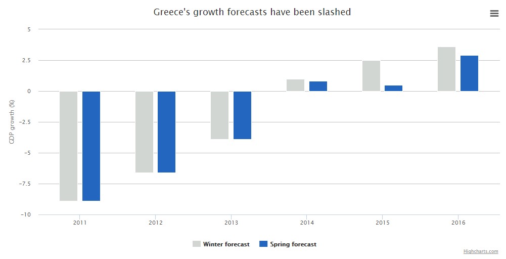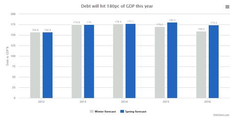 Y si el PIB cae, sin aplicar los necesarios ajustes presupuestarios, uno de los efectos directos es el aumento de la deuda pública. Bruselas estima ahora que el endeudamiento heleno subirá del 177% del PIB en 2014 al 180% este año.
