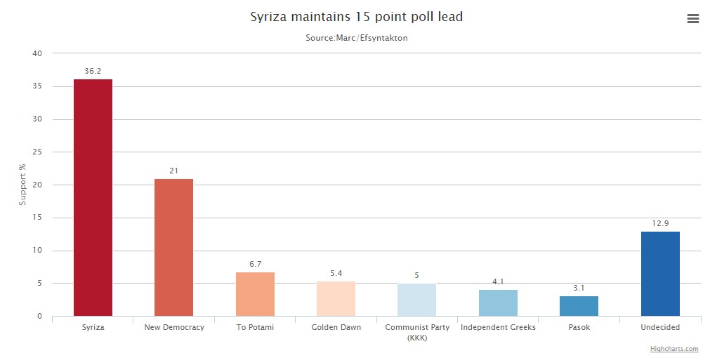 El primer ministro, Alexis Tsipras, cautivó a la población griega, hastiada con el tradicional bipartidismo por la profundidad y duración de la crisis, con el firme propósito de sacar al país del atolladero mediante su particular receta de gasto público, rigidez económica e impago de deudas. Su lema electoral era simple, al tiempo que efectivo: "No" a la troika, "no" al rescate internacional -y sus memorandos- y "no" a la austeridad.