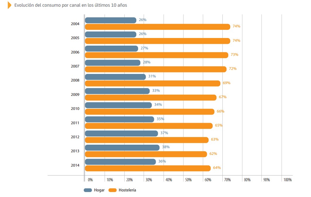 Siguiendo la mejora general, el consumo de cerveza en bares y restaurantes también ha registrado el primer dato positivo desde el inicio de la crisis, un crecimiento del 3,6%. Así, los establecimientos hosteleros se mantienen como el canal de consumo mayoritario de la bebida fermentada, con un 64% del total, frente al 36% que corresponde al hogar.