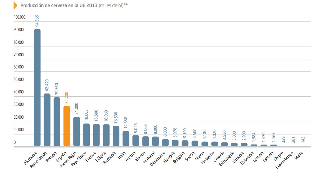 La producción de la bebida fermentada también aumentó el pasado año y las compañías elaboraron más de 33,6 millones de hectolitros. Este dato mantiene a España como cuarto productor dentro de la Unión Europea y décimo a nivel mundial, sólo por detrás de Alemania, Reino Unido y Polonia. Otra cifra relevante que contiene el informe es que el 90% de la cerveza consumida en España es de producción nacional.