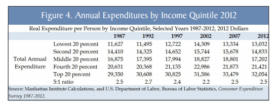 A menudo escuchamos que el aumento de la desigualdad debe preocuparnos porque el enriquecimiento de las élites convive con un empobrecimiento de los demás. Los estudios de Scott Winship para el Manhattan Institute desmienten esta tesis, apuntando que el enriquecimiento de las clases altas ha ido en paralelo con un aumento de los ingresos entre los trabajadores de menos ingresos.