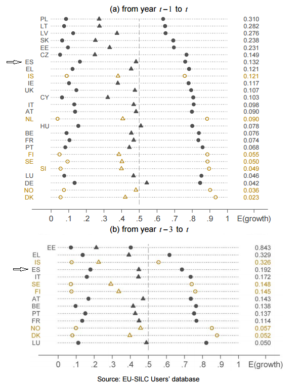 Para el periodo 2003-2007, dependiendo del segmento temporal analizado, España es el séptimo o el cuarto país europeo con una mayor movilidad social: