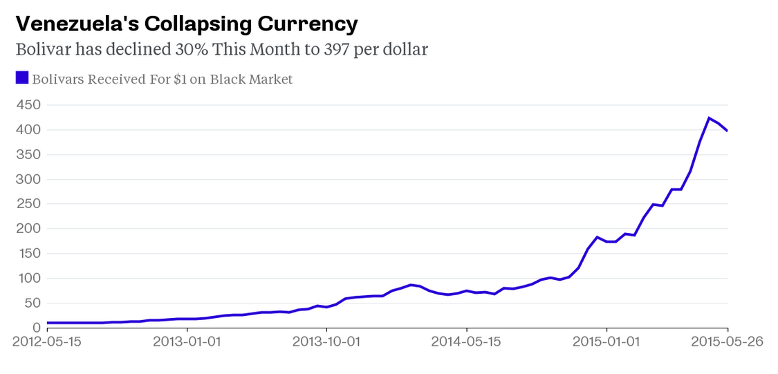 De acuerdo con Bloomberg, la inflación en Venezuela se mueve en cifras del 70%. Solamente a lo largo del último mes, el número de bolívares necesarios para poder comprar bienes y servicios ha aumentado otro 30%, un reflejo más del grave deterioro del valor del bolívar en un contexto de fuerte inflación.