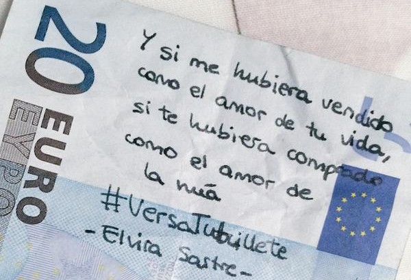 #VersaTuBillete, ése es el hashtag que se ha puesto de moda entre unos poetas muy particulares. Y es que en lugar de escribir sus versos en un cuaderno, lo están empezando a hacer en los billetes de curso legal.
