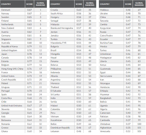 Venezuela obtiene el peor resultado de los 102 países analizados, suspende en todos los criterios, por detrás incluso de países en conflicto como Afganistán y Zimbabue. Una clasificación que vuelve a dejar en evidencia al país gobernado por Nicolás Maduro y que se añade a la lista que encumbra en otras cuestiones como nivel de pobreza.