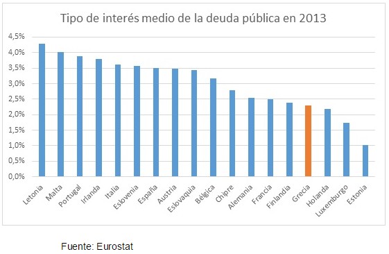 Sin embargo, con la reestructuración de su deuda pública orquestada por la troika en 2012, "ha conseguido rebajar su losa de intereses al 4% del PIB [en 2013], que, si bien no es bajo, tampoco resulta inmanejable". De hecho, países como Irlanda, Italia o Portugal -que hasta el momento no han reclamado reestructuraciones en su deuda pública- están soportando ahora mismo costes financieros mayores.