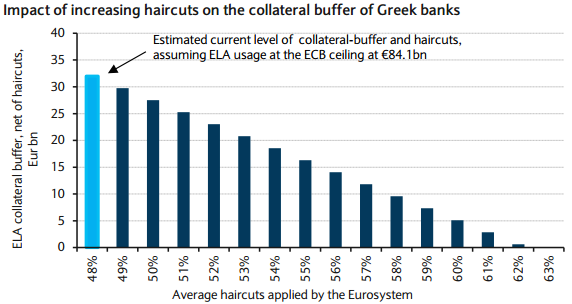 Anthee Carassava, periodista de The Times, cita que el Banco de Grecia está preocupado por la posibilidad de que el BCE corte la línea urgente de liquidez. En caso de que Draghi la suspendiese, se procedería al cierre indefinido de las entidades financieras del país. Esta situación, conocida como vacación bancaria, puede ser la antesala de un "corralito".