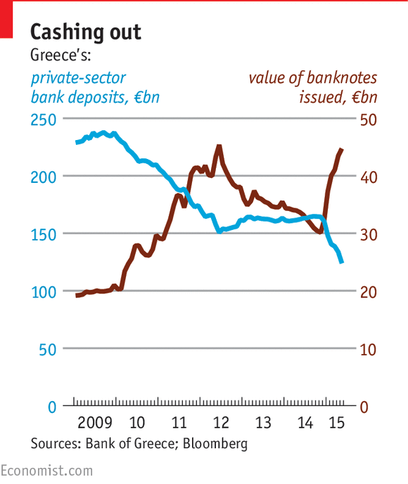 Esto explicaría la decisión del BCE de desenchufar a Grecia: el "corralito" fue la consecuencia inmediata, lo que obligará a los ciudadanos a considerar muy seriamente la papeleta que introducirán el día 5 en las urnas.