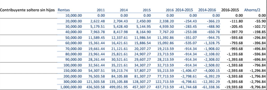 Siguiendo esta estimación, desde REAF han calculado cómo le afectaría a un soltero sin hijos la bajada de impuesto. En la siguiente tabla se muestran los diferentes casos dependiendo de la renta.