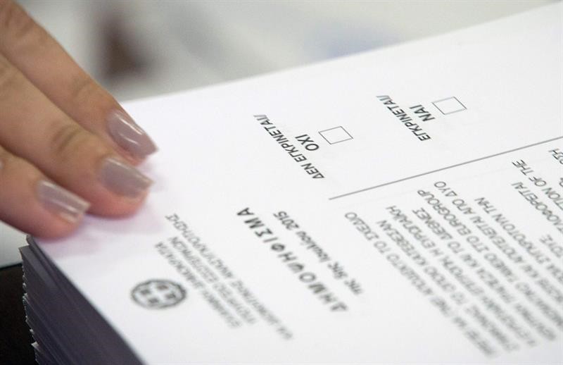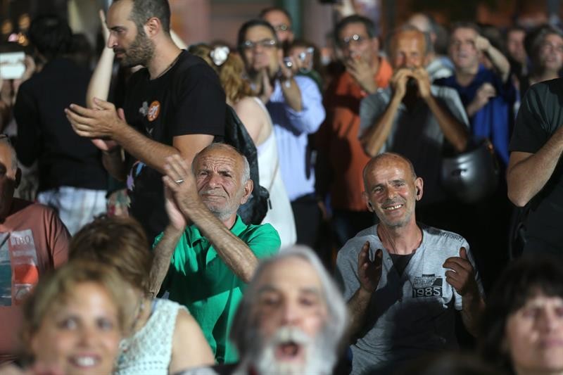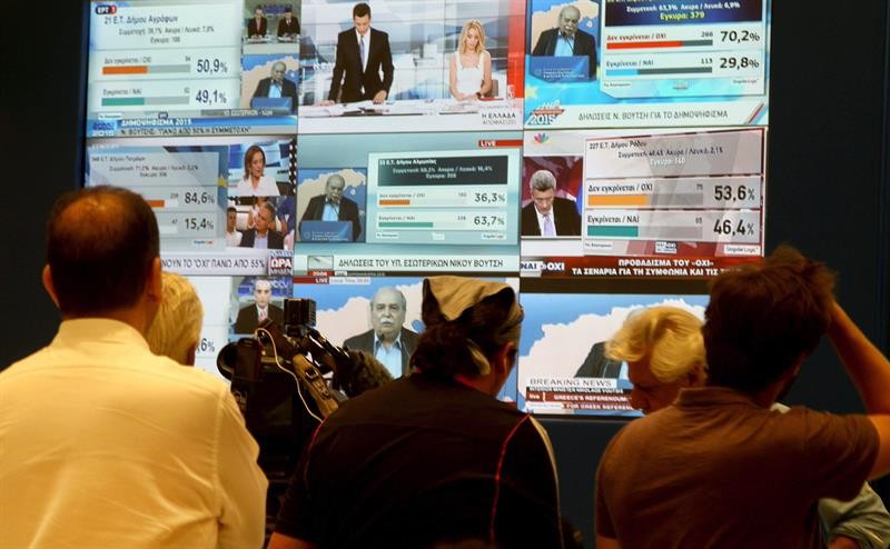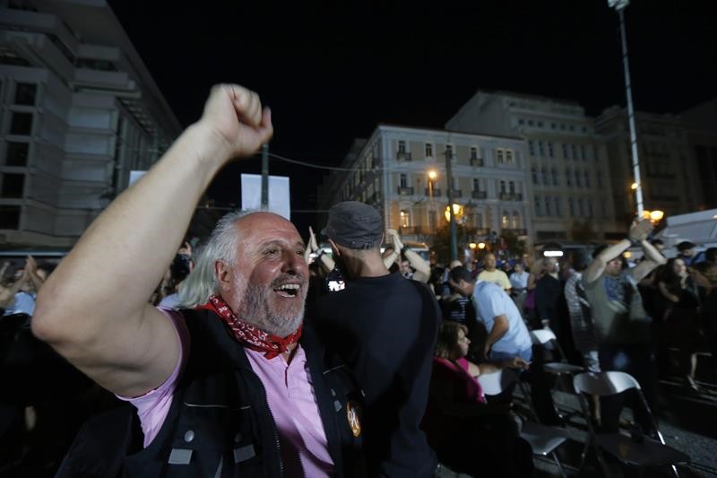 Banderas griegas en las celebraciones de los partidarios del "no".