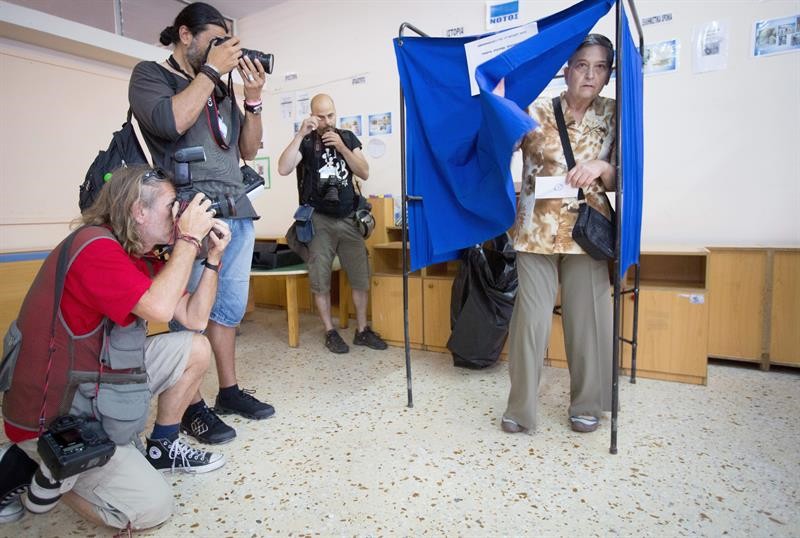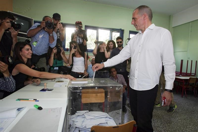 El ministro de Finanzas griego, Yanis Varufakis, deposita su voto en la urna.
