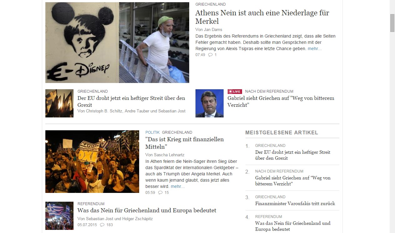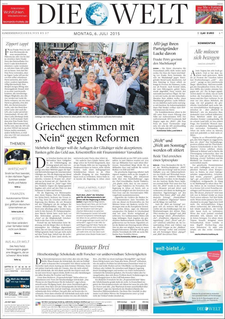Pesimismo en Die Welt: "El no de Atenas es también una derrota para Merkel".