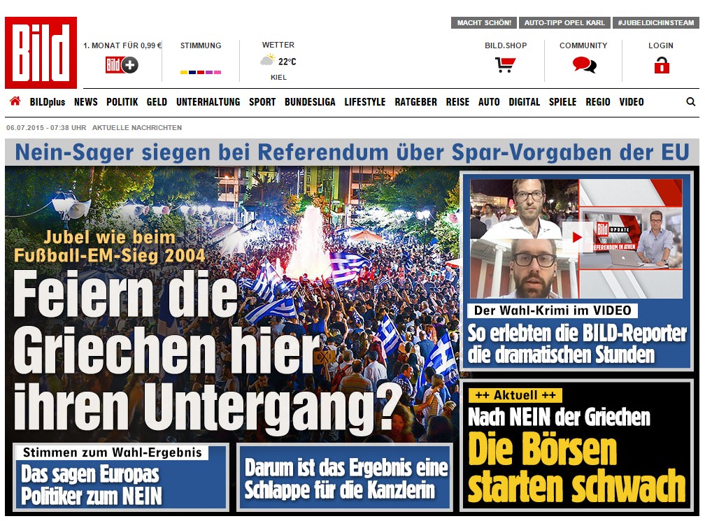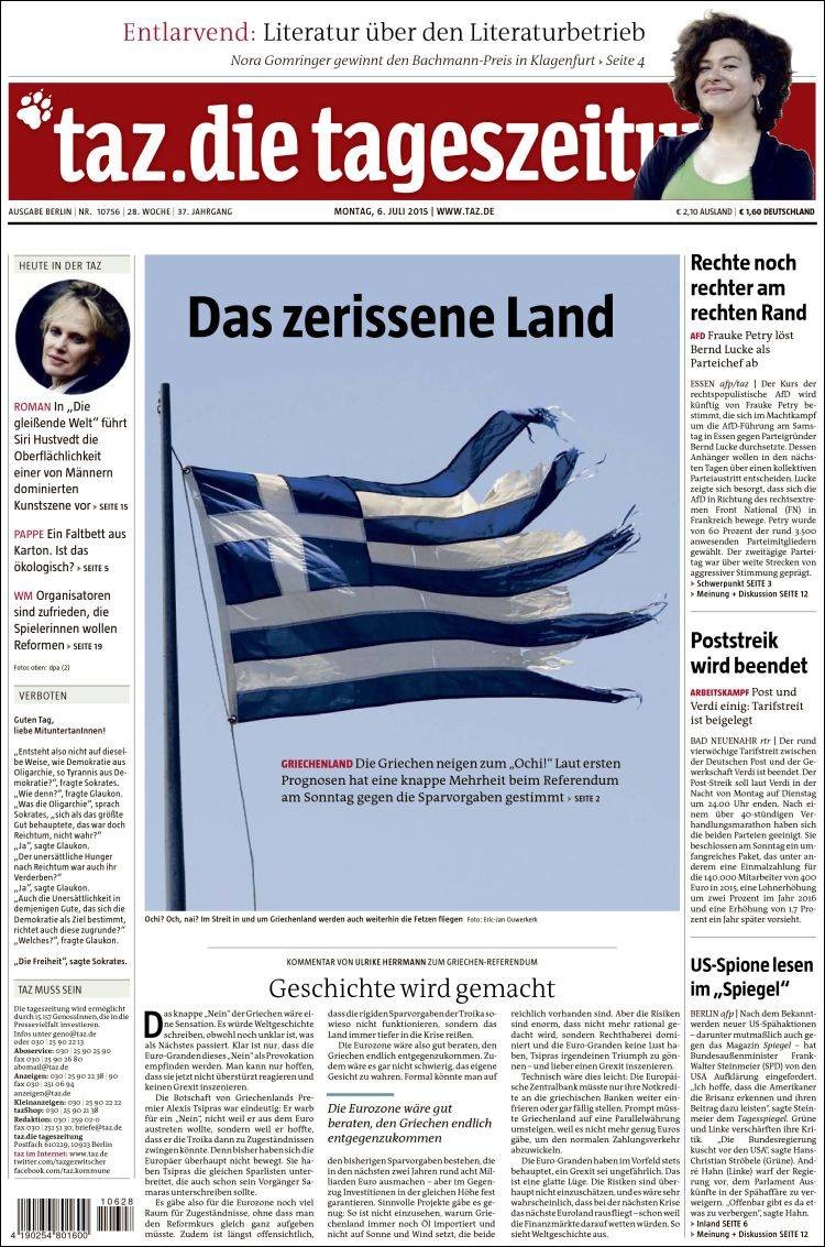 Estupefacción en la prensa alemana ante el "no" griego. Así analizan los diarios germanos el resultado del referéndum.