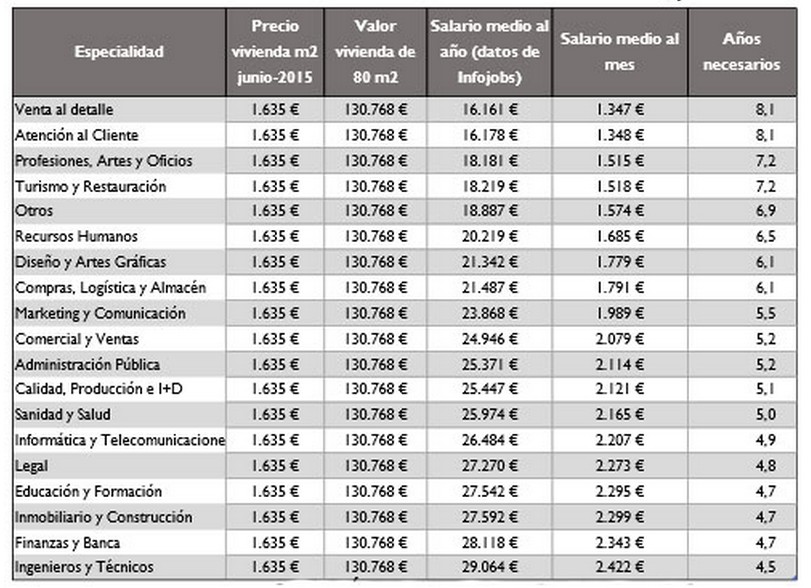 Además, el estudio desgrana el tiempo medio necesario para pagar una vivienda según la profesión del comprador, que está ligada al salario medio.