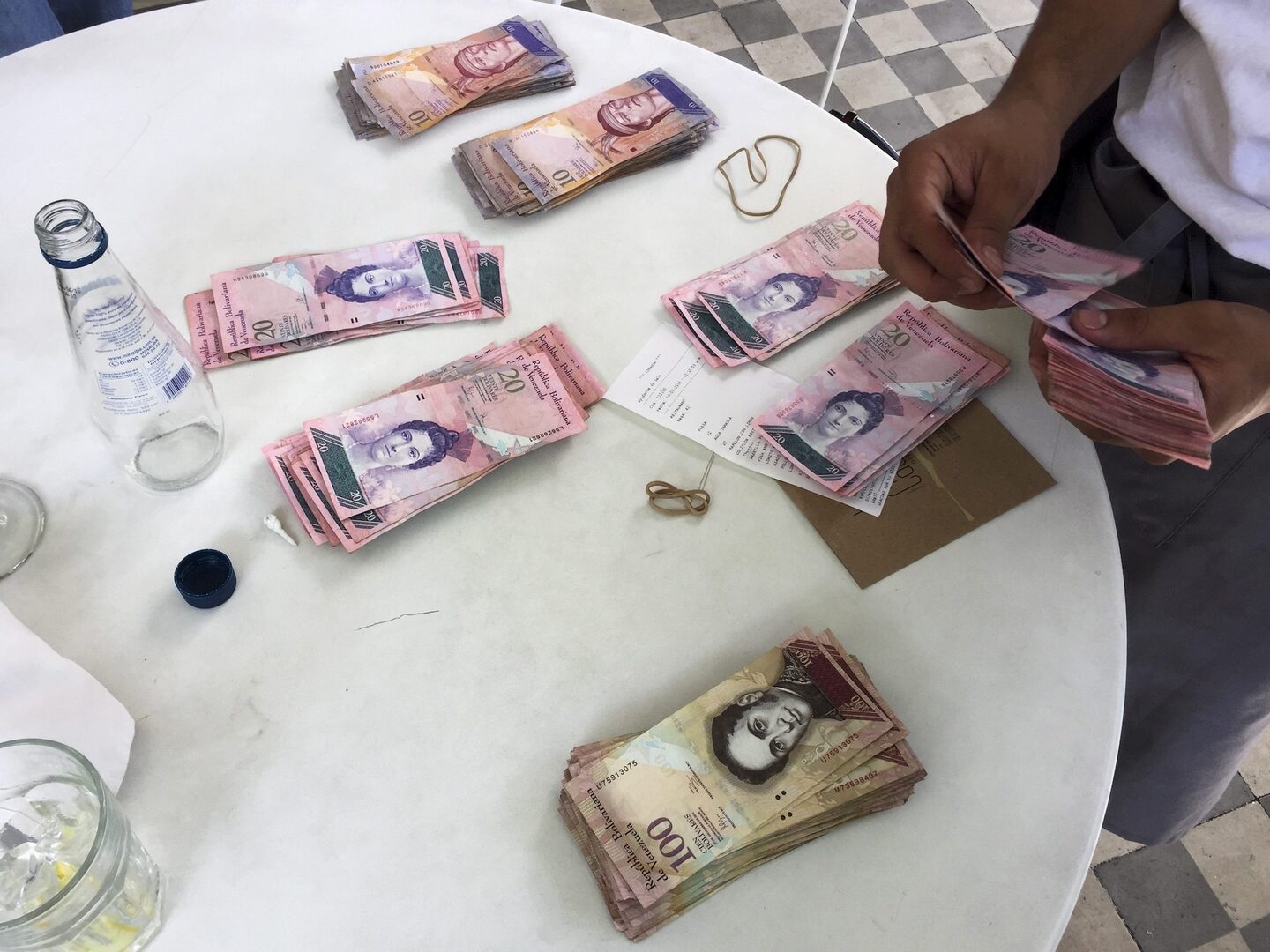 Sin embargo, el Gobierno chavista de Nicolás Maduro se niega a admitir la realidad hiperinflacionaria y, en lugar de emitir billetes de alta denominación, está aumentando la impresión de billetes de 10 y 20 bolívares. Si bancos y cajeros se nutren de billetes de denominación baja, la alta demanda de efectivo hace que se agoten muy rápido, con la consiguiente escasez de dinero en metálico.