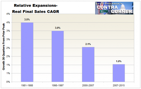También critica el autor de El triunfo de la política que Krugman ignore la evolución de la economía estadounidense en tiempos de reducido endeudamiento público. "De 1870 a 1914, la tasa de crecimiento medio fue del 4%. Este periodo constituye el de mayor expansión de la producción, así como el principal salto adelante que han experimentado los estadounidenses en cuanto a su nivel de vida. Todo ello en un contexto de bajísima deuda pública, hasta el punto de que antes de la I Guerra Mundial nos encontramos un pasivo estatal de 1.400 millones de dólares, cifra casi idéntica a la de 1863. Hablamos de una deuda equivalente a 11 dólares per cápita, menos del 5% del PIB", apunta Stockman.