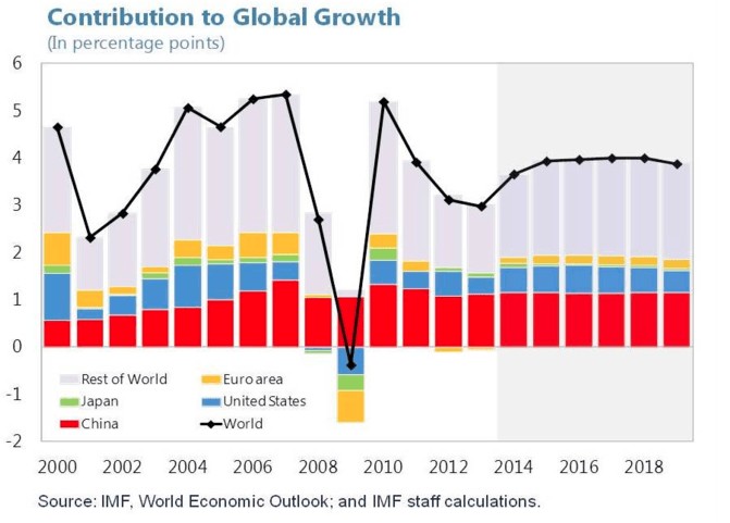 En este sentido, cabe recordar que China ha aportado en los últimos años casi el 40% del crecimiento mundial. El objetivo de Pekín es crecer a una tasa del 7% anual, pero todo indica que se quedará por debajo de ese umbral.