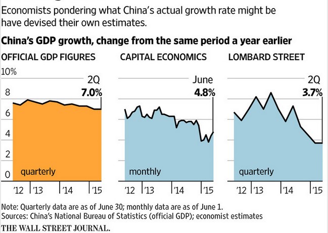 Las estimaciones alternativas al PIB chino realizadas por algunas firmas de análisis, por ejemplo, reducen su ritmo de crecimiento a una horquilla que oscila entre el 3,7% y 4,8% en el segundo trimestre frente al 7% oficial.