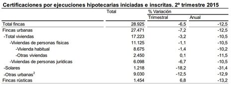 "Las ejecuciones hipotecarias sobre viviendas habituales caen un 10,2% en segundo trimestre". Ésta es una de las principales conclusiones de la Estadística sobre Ejecuciones Hipotecarias que el Instituto Nacional de Estadística (INE) publicaba este jueves. Según los datos del instituto público, entre abril y junio de este año se iniciaron 28.925 certificaciones por ejecuciones hipotecarias, de las que 8.675 correspondieron a la vivienda habitual de una persona física. En todos los casos, son cifras que suponen una caída de alrededor del 10-12% respecto a las de un año antes.