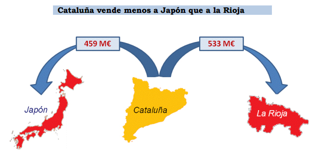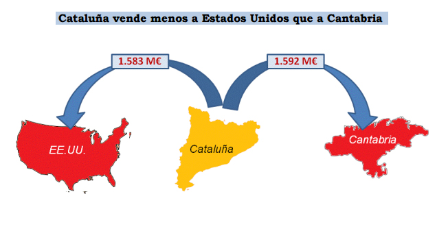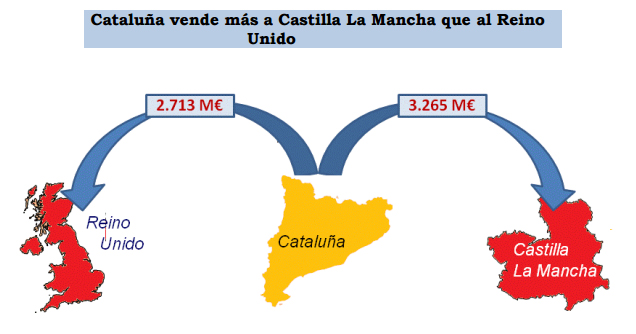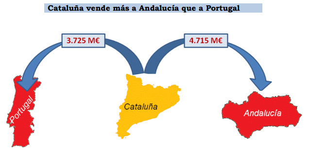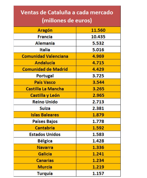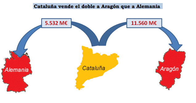 Casi la mitad de las ventas al exterior de las empresas catalanas se hace al resto de España. Por ejemplo, Cataluña vende más a la comunidad autónoma de Aragón que todo lo que exporta a Francia.