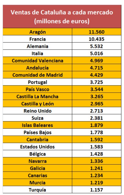 - No es lo mismo: por último, hay que destacar que según los datos de la propia Generalidad, no es lo mismo vender al resto de España que al extranjero porque (como explicamos en el anterior punto) los costes son menores. Por cada euro vendido en España se generan un 6% más de puestos de trabajo, un 7% más de beneficios empresariales y un 18% más de impuestos para el Gobierno catalán. Es decir, a igualdad de condiciones, es más rentable (para la empresa y para Cataluña) vender a Aragón que a Finlandia o Uruguay. También este beneficio se perdería.