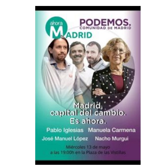 4. La alcaldesa reniega de Podemos. Carmena ha pasado de compartir cartel electoral con Pablo Iglesias y José Manuel López (actual portavoz de Podemos en la Asamblea) a renegar de esta formación