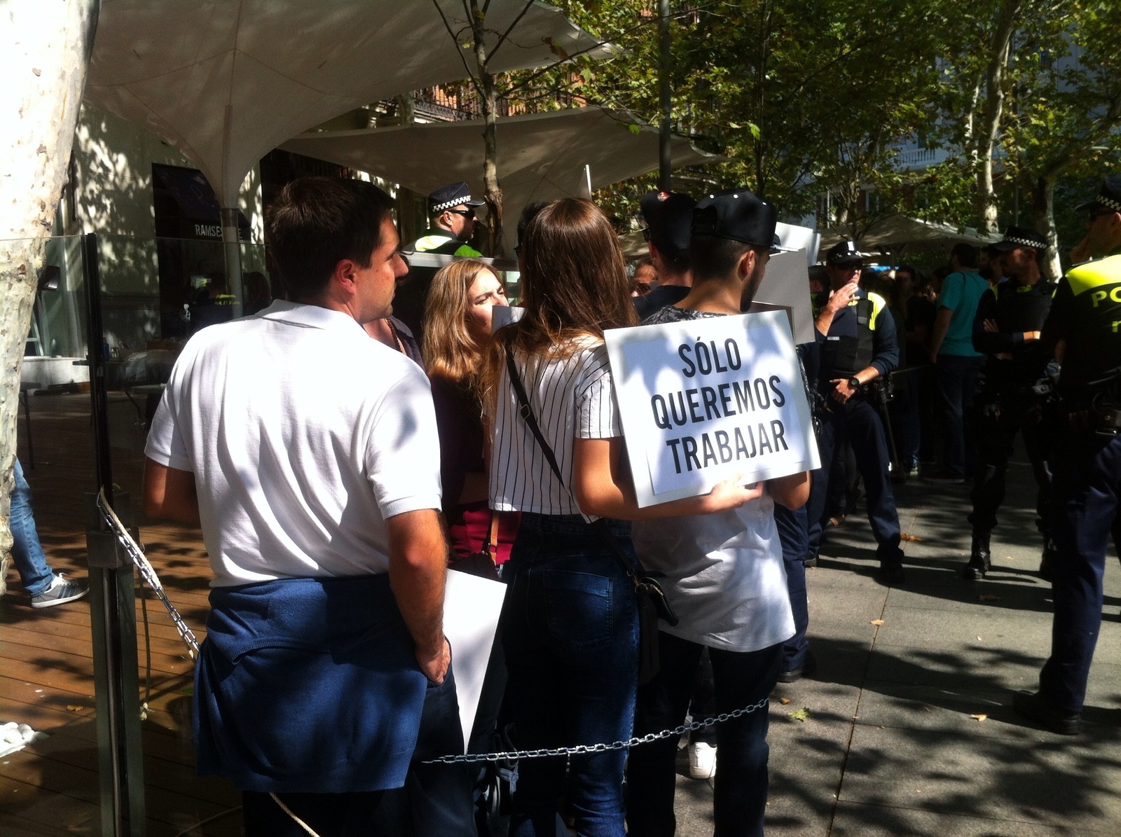 Los empleados del local se encadenaron a la terraza para frenar el desahucio.