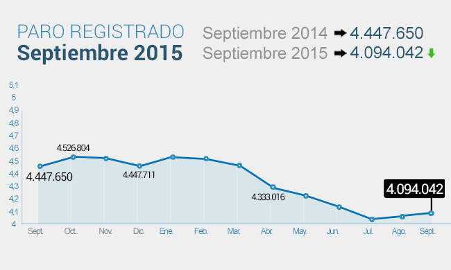 Por un lado, el número de parados registrados en las oficinas de los servicios públicos de empleo (antiguo Inem) aumentó en 26.087 personas en septiembre, un 0,64% respecto al mes anterior, hasta situarse el total de desempleados en 4.094.042 personas, según los datos publicados este viernes por el Ministerio de Empleo.