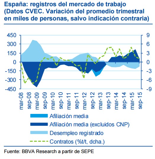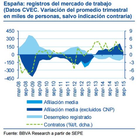 Sin embargo, lo bueno es que no sucede lo mismo en cuanto a la creación de empleo. En términos desestacionalizados, la Seguridad Social ganó 35.072 cotizantes en septiembre, una cifra muy similar a la registrada hace justo un año (+37.500) y muy superior a la de septiembre de 2013 (+11.000 empleos).